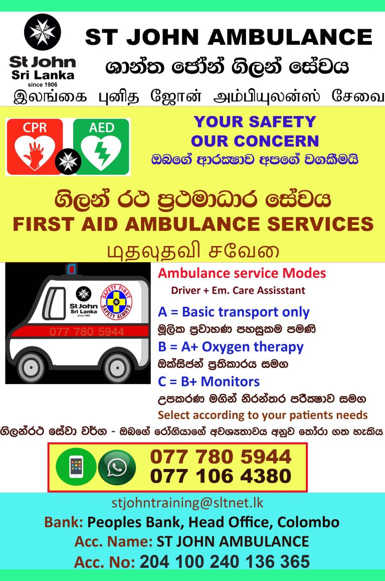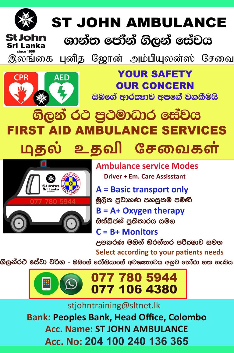The St John Ambulance Association and Brigade in Sri Lanka is a government-approved charity vide gazette No. 193 of 05.12.1975